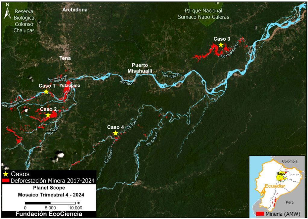 Esta actividad afecta particularmente a la provincia de Napo, una zona estratégica por su biodiversidad y riqueza hídrica.