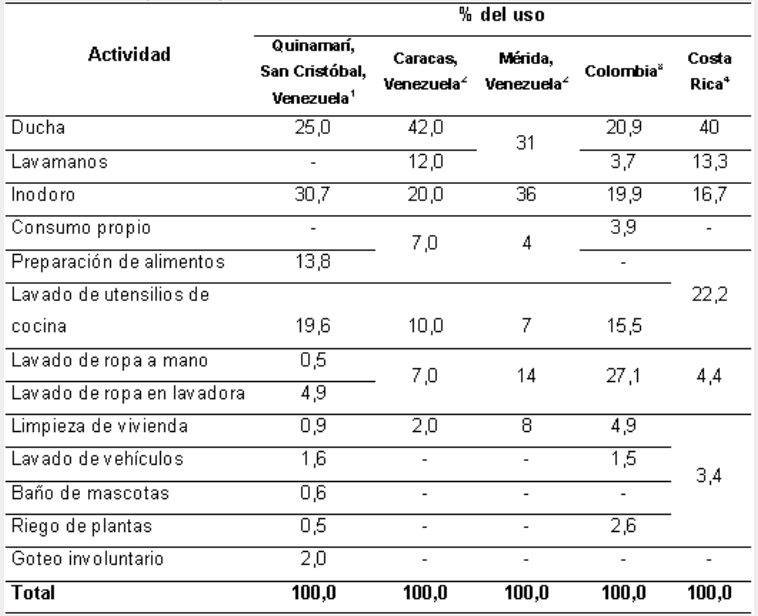 A continuación, un ejemplo del uso distinto del agua en tres regiones de Venezuela, Colombia y Costa Rica.