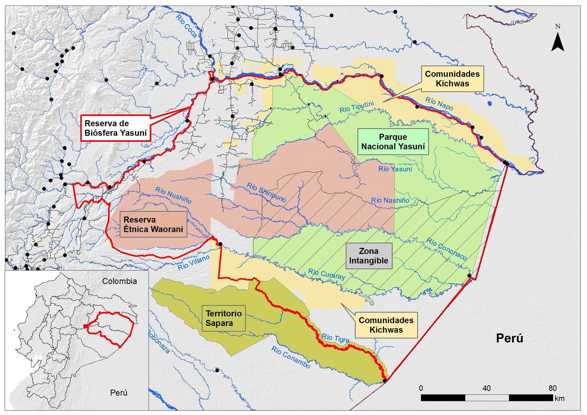 Este territorio, delimitado por los ríos Napo y Curaray, tiene gran relevancia cultural, ya que es hogar de comunidades Kichwa, Waorani y Pueblos Indígenas en Aislamiento Voluntario (PIAS), como los Tagaeri, Taromenane y Dukagaeri. Para proteger a estos últimos, en 1999 se creó la Zona Intangible.