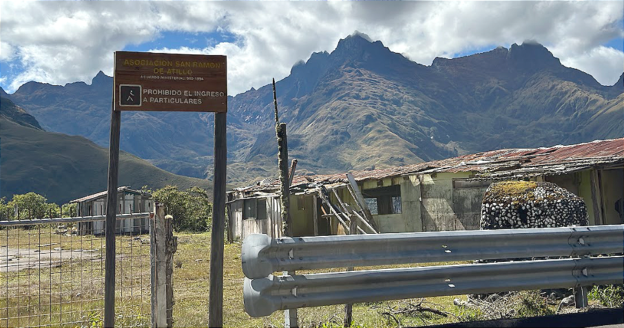 El letrero "Prohibido el ingreso a particulares”, de la Asociación San Ramón de Atillo, creada por Acuerdo Ministerial 962 de 1994, es parte de la chatarra que, junto a pedazos de techos de zinc, contamina ambiental y visualmente el paraje. Hay además desechos dejados por turistas furtivos y bebedores.