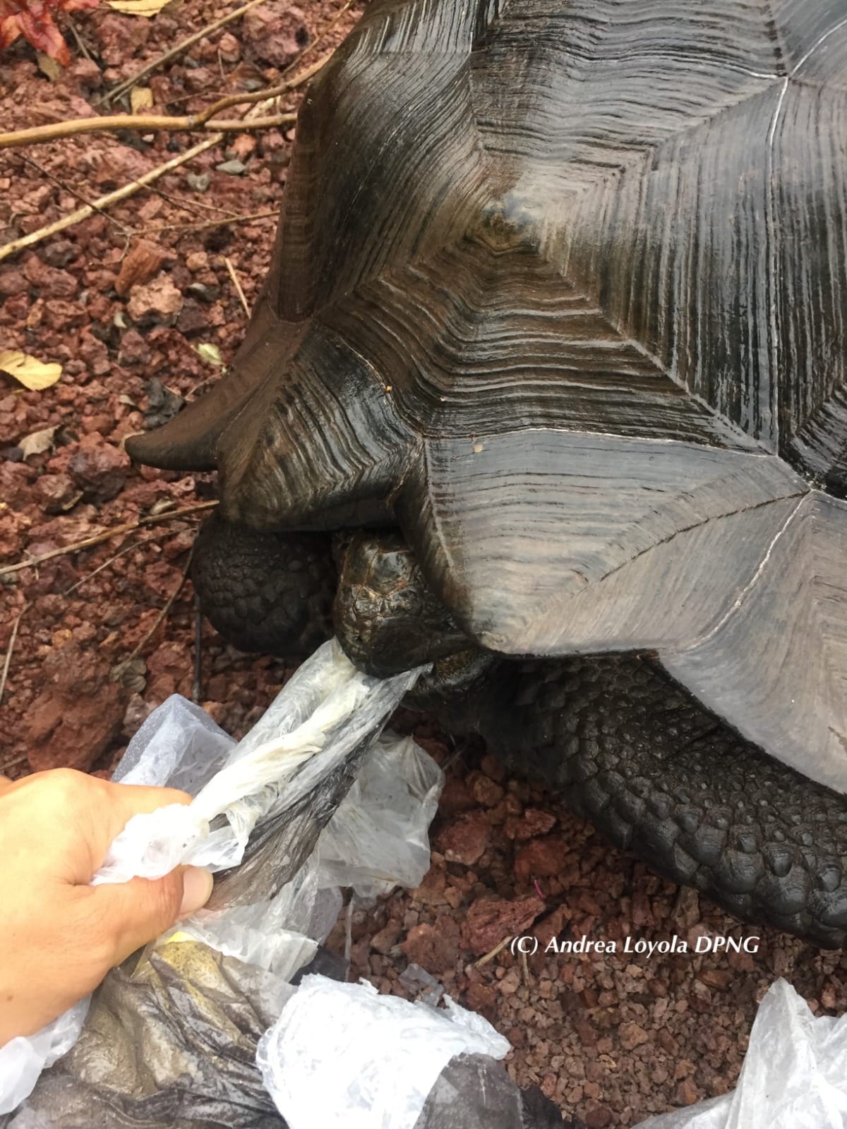 Juan Pablo Muñoz-Pérez, autor del estudio e investigador del Galápagos Science Center de la Universidad San Francisco de Quito (USFQ), explica que la tortuga verde marina (Chelonia mydas) es la más susceptible a enredarse. Las más vulnerables a ingerir estos plásticos son las tortugas de Santa Cruz (Chelonoidis porteri).