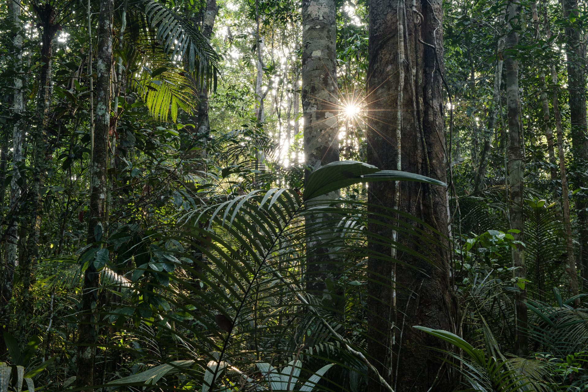 Esta danza solo se interrumpe en los momentos más calurosos del día, cuando el sol penetra intensamente en la Selva y el calor se hace insoportable. Entonces todos buscan refugio en las zonas más bajas de la vegetación. Se acomodan en las ramas y reposan en los canales naturales, silenciados por el sonido de las corrientes de agua. Es como si toda la Selva descansara junta, suspendida hasta que baje el sol. Al final del día, vuelven a la acción, guiándose unos a otros con una sinfonía multimelódica de cantos en busca de comida fresca.