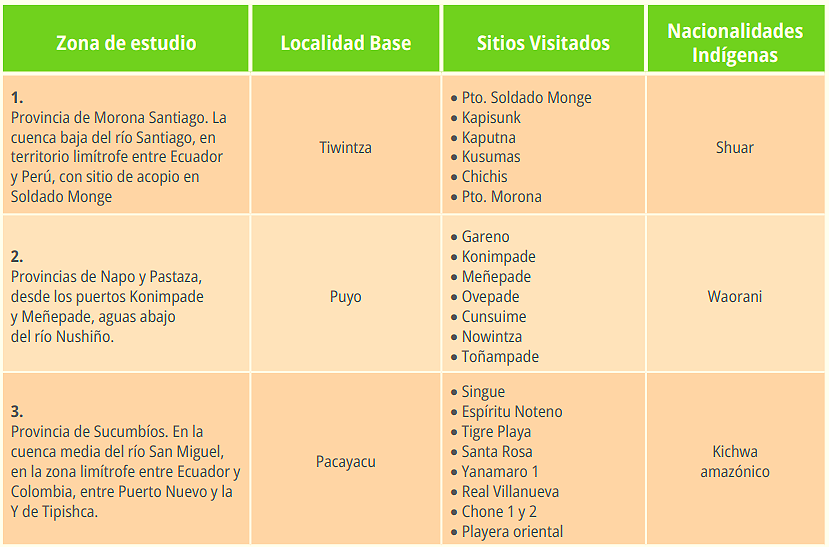 En Pastaza, señala, se ha implementado un proyecto de siembra a gran escala en varias parroquias. En Napo y Sucumbíos también se identifican áreas de cultivo. En el siguiente cuadro del reporte se detallan las zonas y las nacionalidades.