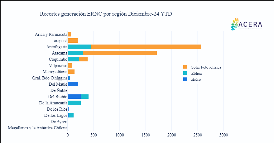 La concentración de parques fotovoltaicos en el norte y eólicos en el sur, la escasa infraestructura de almacenamiento y transmisión, y el uso ineficiente de la institucionalidad y estructura generaron el vertimiento de más de 5.500 GWh, solo en 2024.