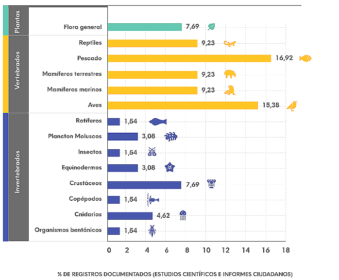La evidencia científica compilada indica que al menos 96 especies han sido afectadas por la contaminación plástica en el país.
