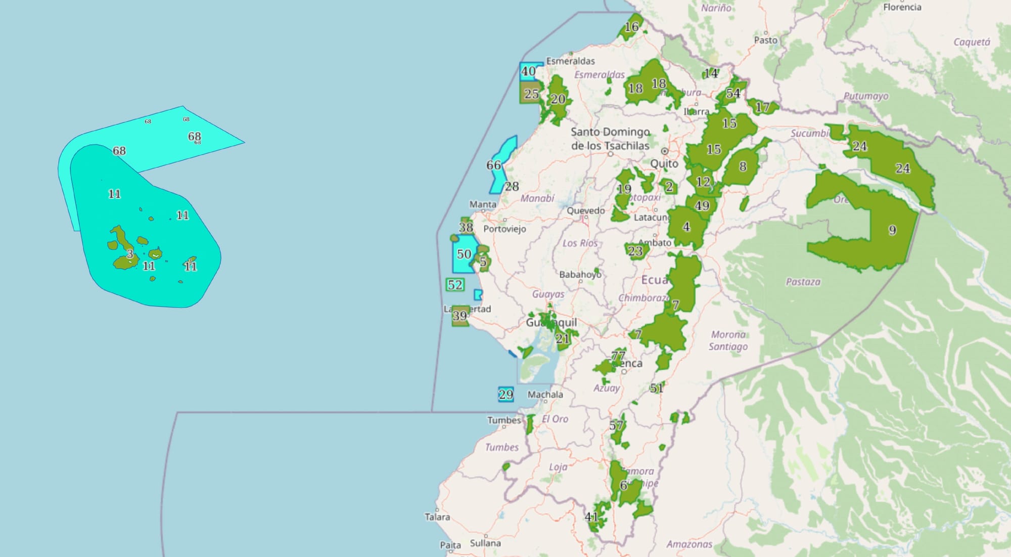 Mapa de Áreas Protegidas de Ecuador