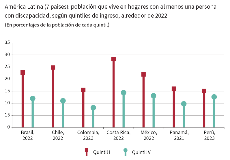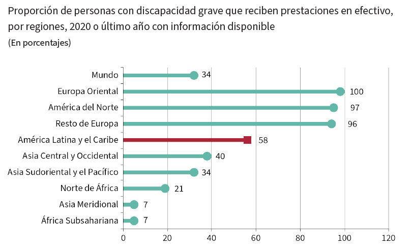 En América Latina y el Caribe, el avance hacia los ODS para las personas con discapacidad es insuficiente en un 30%. En un 14% de las metas, el progreso se ha estancado o retrocedido. Las metas afectadas incluyen acceso a recursos financieros, atención de salud y tecnologías de la información.