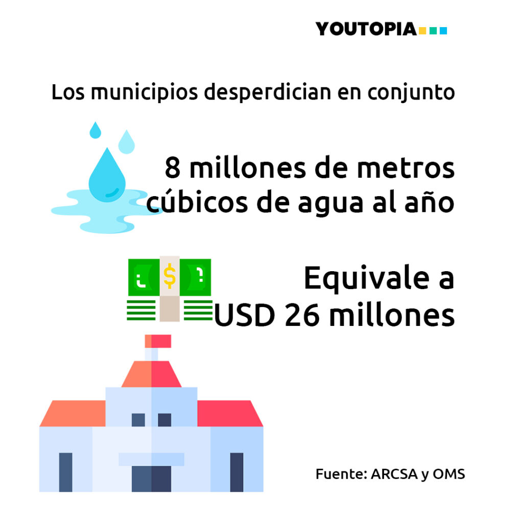 La cantidad de agua que desaparece en las tuberías equivale a una pérdida económica de USD 327,67 millones, un monto equivalente al 0.3% del Producto Interno Bruto del país.
