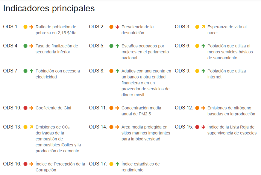 En contraste, no hubo mejoras en los ODS Fin de la pobreza (1), Hambre cero (2), Trabajo decente y crecimiento económico (8), Reducción de las desigualdades (10), Vida de ecosistemas terrestres (15) y Alianzas para lograr los objetivos (17).
