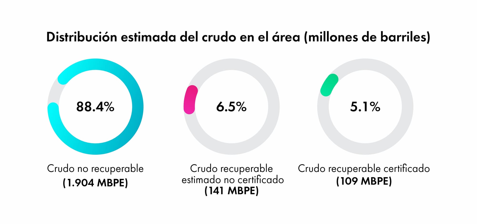 El respectivo Plan de Desarrollo considera la experiencia adquirida en el área, con el fin de maximizar el recobro, de los cuales 109 millones de barriles de petróleo equivalente (MBPE) son recursos contingentes certificados, netos para Ecopetrol, a diciembre 31 de 2024. El volumen original estimado en sitio es de 2.154 millones de barriles de crudo.