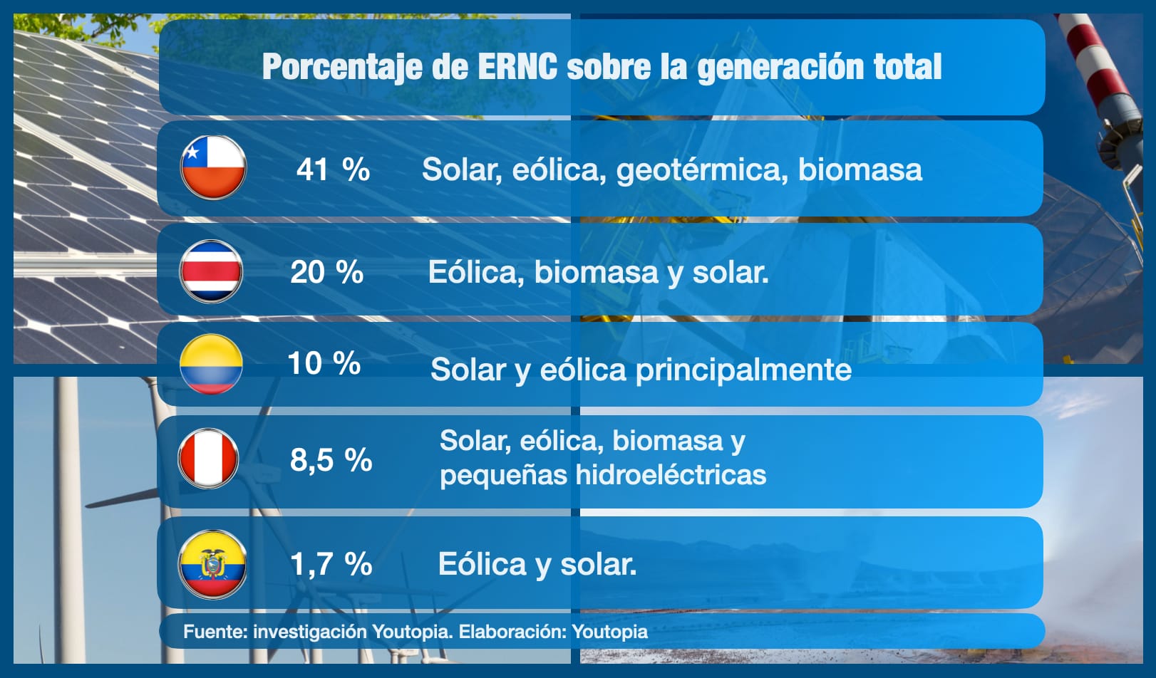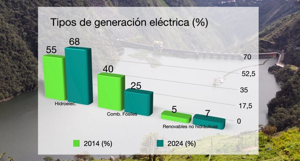 Las energías convencionales son la hidroelectricidad, así como la generada por combustibles fósiles. Las no convencionales son geotérmica, fotovoltaica, eólica y biomasa. La CAF agrega el “bombeo”, que se explica más adelante.