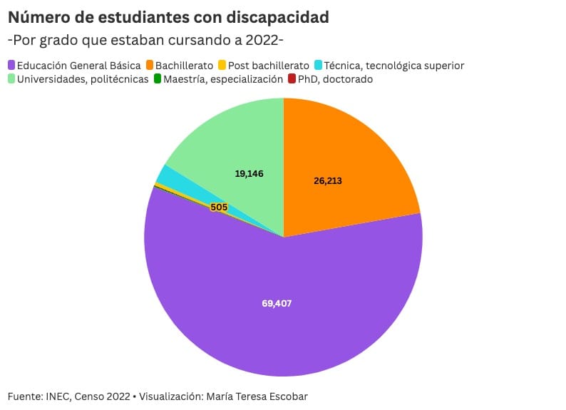 La culminación del ciclo educativo es todavía un camino cuesta arriba para las personas con discapacidad, en Ecuador solo 14 de cada 100 logran completar sus estudios de bachillerato, de acuerdo con cifras del Censo 2022.