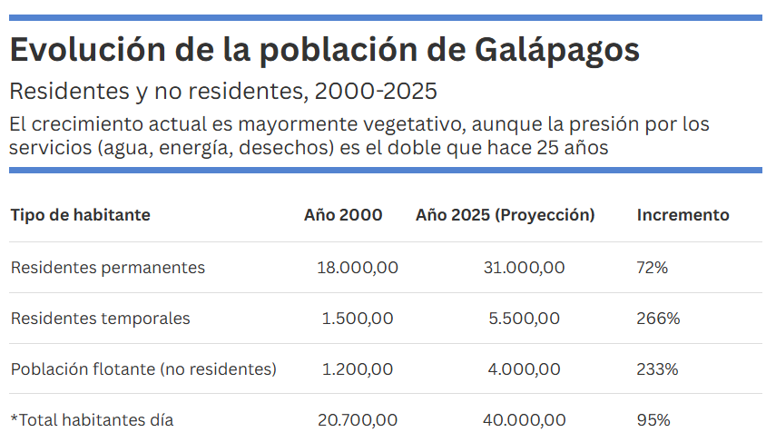 Un primer asunto es la presión humana en un espacio limitado. En el 2000, Galápagos recibía cerca de 68.000 visitantes; en 2019 alcanzó un récord de 271.238, y para 2025 las proyecciones bordearon las 300.000 visitas anuales.
