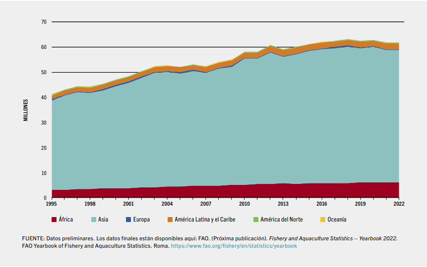 Se cuenta así con datos más fiables y amplios sobre el estado mundial de los recursos pesqueros y acuícolas, su explotación y su utilización. Así, se pudo conocer, por ejemplo, que en 2022, la producción pesquera y acuícola alcanzó un récord histórico de 223,2 millones de toneladas.