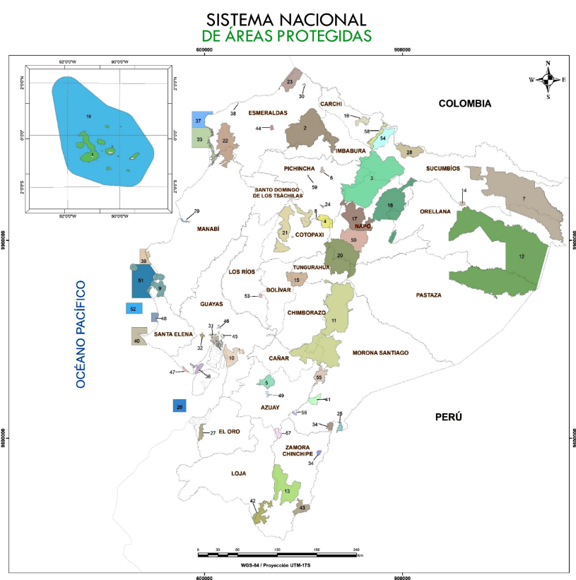 En Ecuador, las áreas protegidas representan casi el 20% del territorio conservado; son parte de uno de los subsistemas del SNAP conocido como Patrimonio de Áreas Naturales del Estado. Se dividen en 11 categorías: (http://areasprotegidas.ambiente.gob.ec/es/todas-areas-protegidas)