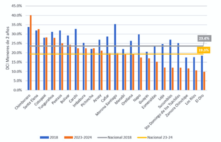 Provincias como Chimborazo, Santa Elena y Tungurahua, que presentan altos índices de DCI, requieren una atención particular para asegurar que estas instancias funcionen de manera óptima, coordinando acciones y respondiendo a las necesidades específicas de sus comunidades.