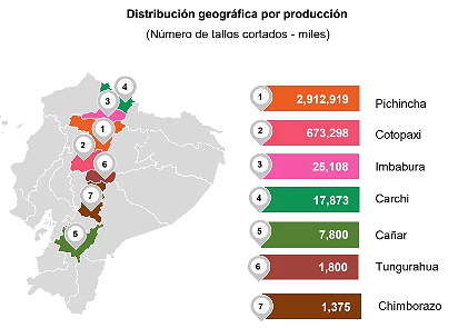 Para 2024, según la Encuesta de Superficie de Producción Agropecuaria Continua del INEC, Chimborazo aparecía en el puesto seis de las ocho provincias interandinas que se dedican a la producción permanente de flores, delante de Cañar y Azuay y cerca de Tungurahua.