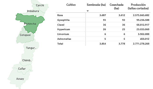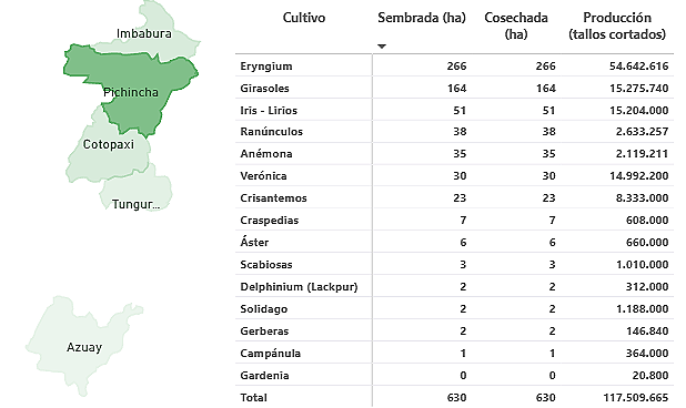 Chimborazo, al igual que Cañar y Carchi, no se dedica a los cultivos transitorios de flores, como sí lo hacen las otras cinco provincias. Y su producción está muy lejos de la líder, Pichincha (5.000 hectáreas entre cultivos permanentes y transitorios), seguida de Cotopaxi.