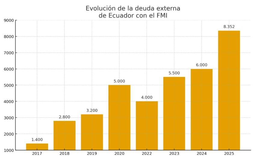 La tendencia no es nueva. Entre 2020 y 2025, el endeudamiento total creció alrededor del 33%. Pasó de USD 63.000 millones a USD 84.000 millones.