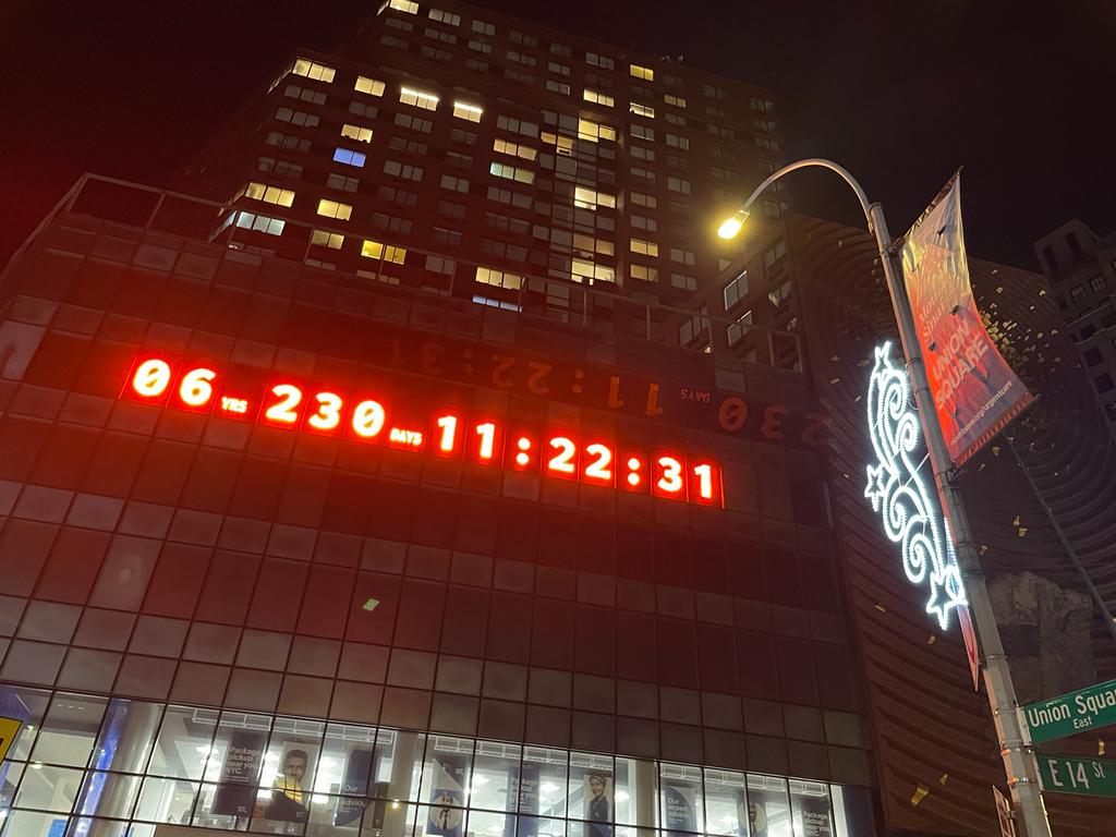 Cada segundo que transcurre en el Reloj Climático, ubicado en Union Square, en Manhattan, marca el tiempo que nos queda para evitar que la temperatura global suba más de 1,5 grados celsius (1,5 °C), comparada con la que tenía la Tierra antes de la era industrial.