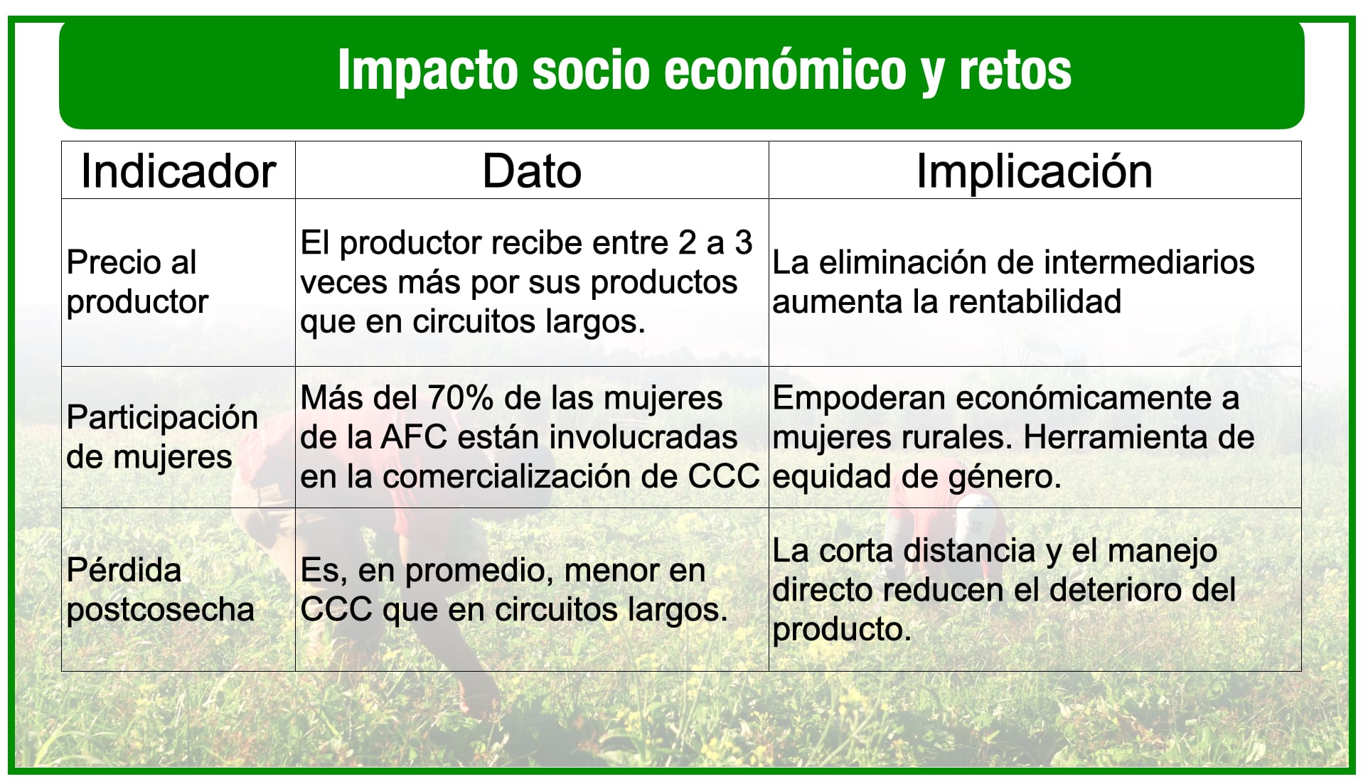 El principal motor de la expansión de los CCC es su dramático impacto en la rentabilidad del pequeño agricultor y la sostenibilidad de la actividad productiva.