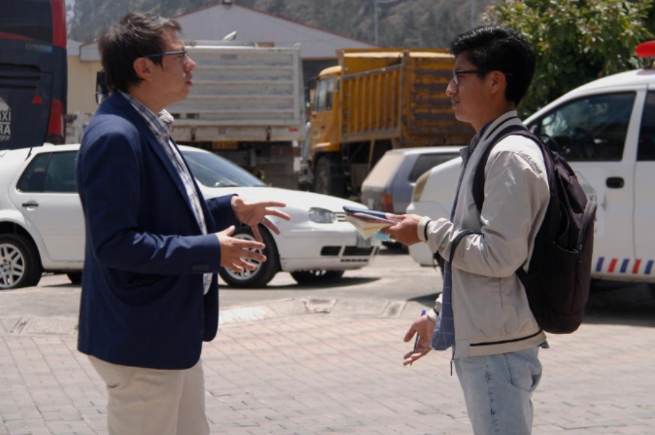 Fuimos hasta la Escuela de Educación General Básica “Edmundo Carbo” para conversar con Vanessa y Danny. Su timidez nos impidió conocer un poco sobre sus jornadas, pero Esther Ugsha, quien los conoce desde pequeños, menciona que Vanessa recorre entre 30 y 45 minutos por un camino lleno de tierra, piedras y con fuertes vientos hasta llegar a la institución. Danny se tarda alrededor de una hora; a su casa se llega descendiendo las montañas desde la comunidad.